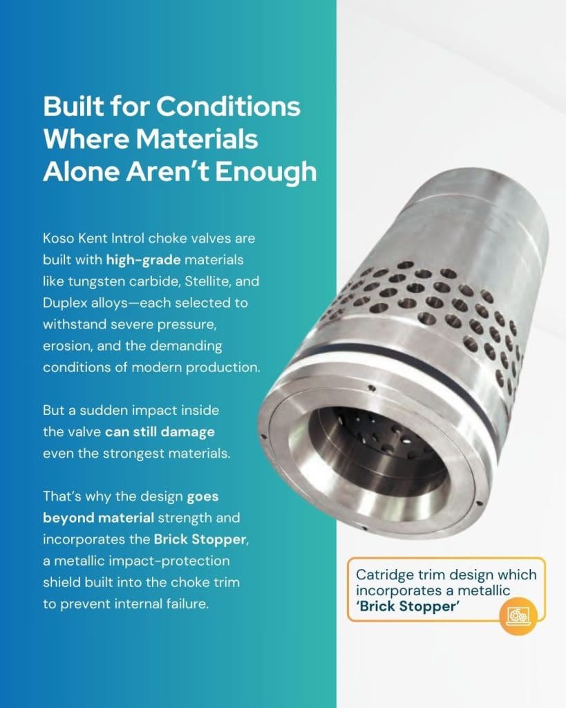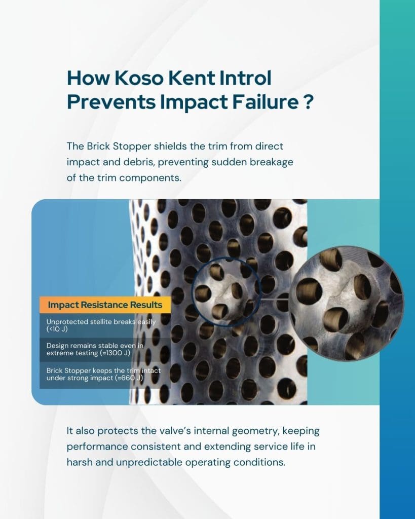 Explore our carousel to learn how Koso Kent Introl’s advanced choke design — including its signature Brick Stopper protection system — enhances impact resistance and safeguards valve integrity where materials alone aren’t enough.